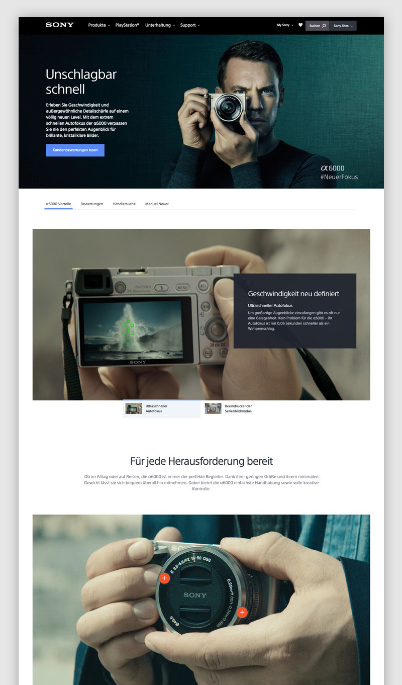 Sony Europe’s custom online campaign and featuring Manuel Neuer for the A5000 camera.