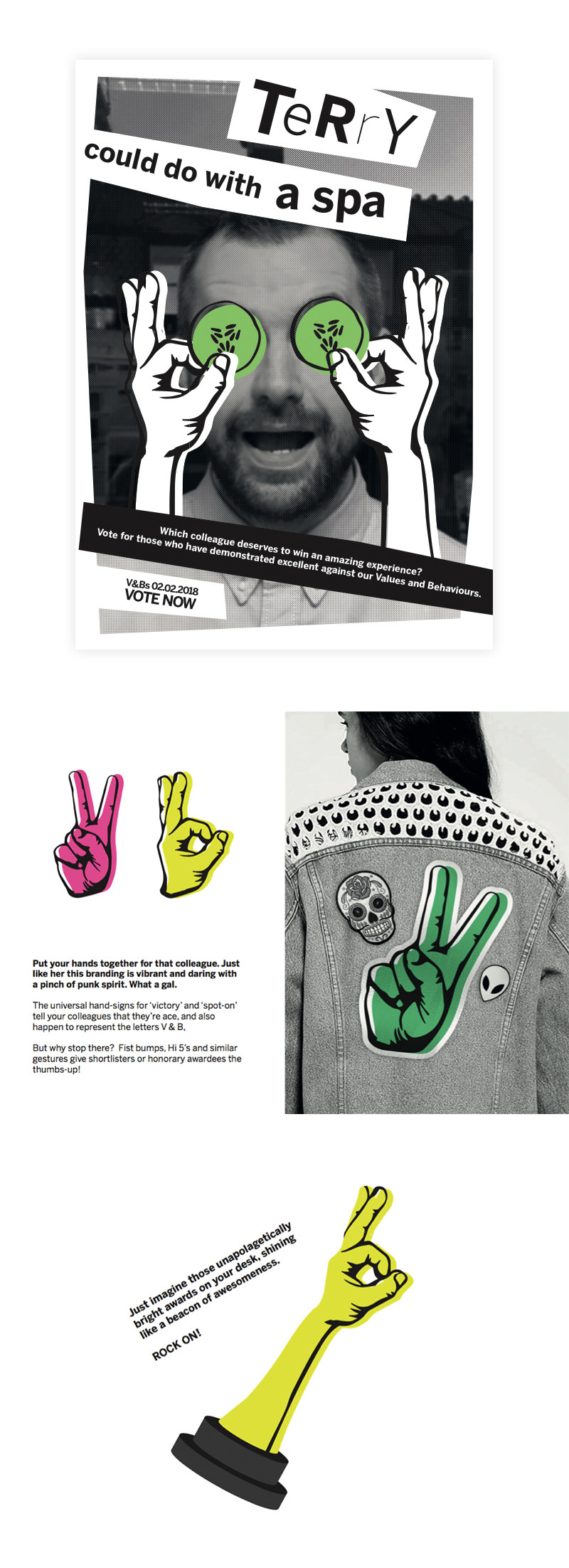 Put your hands together for that colleague. Just like her this branding is vibrant and daring with a pinch of punk spirit. What a gal.